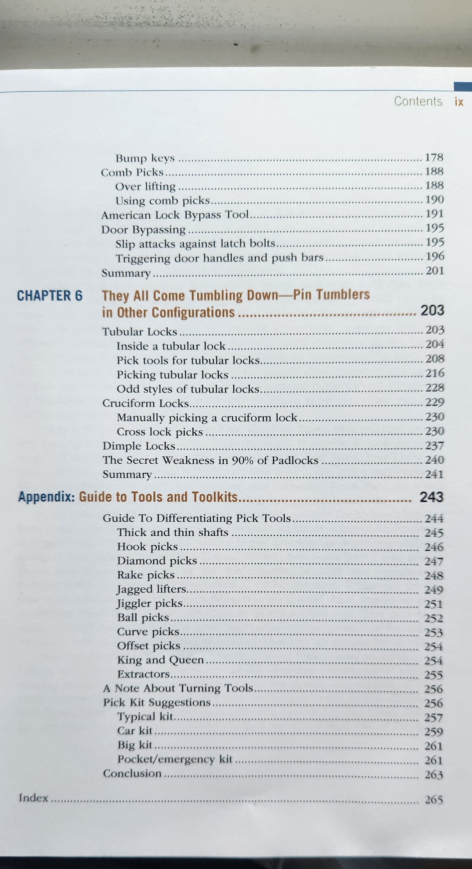 This chapter covers tubular locks, cruciform locks, and dimple locks - how they operate and how to pick them.