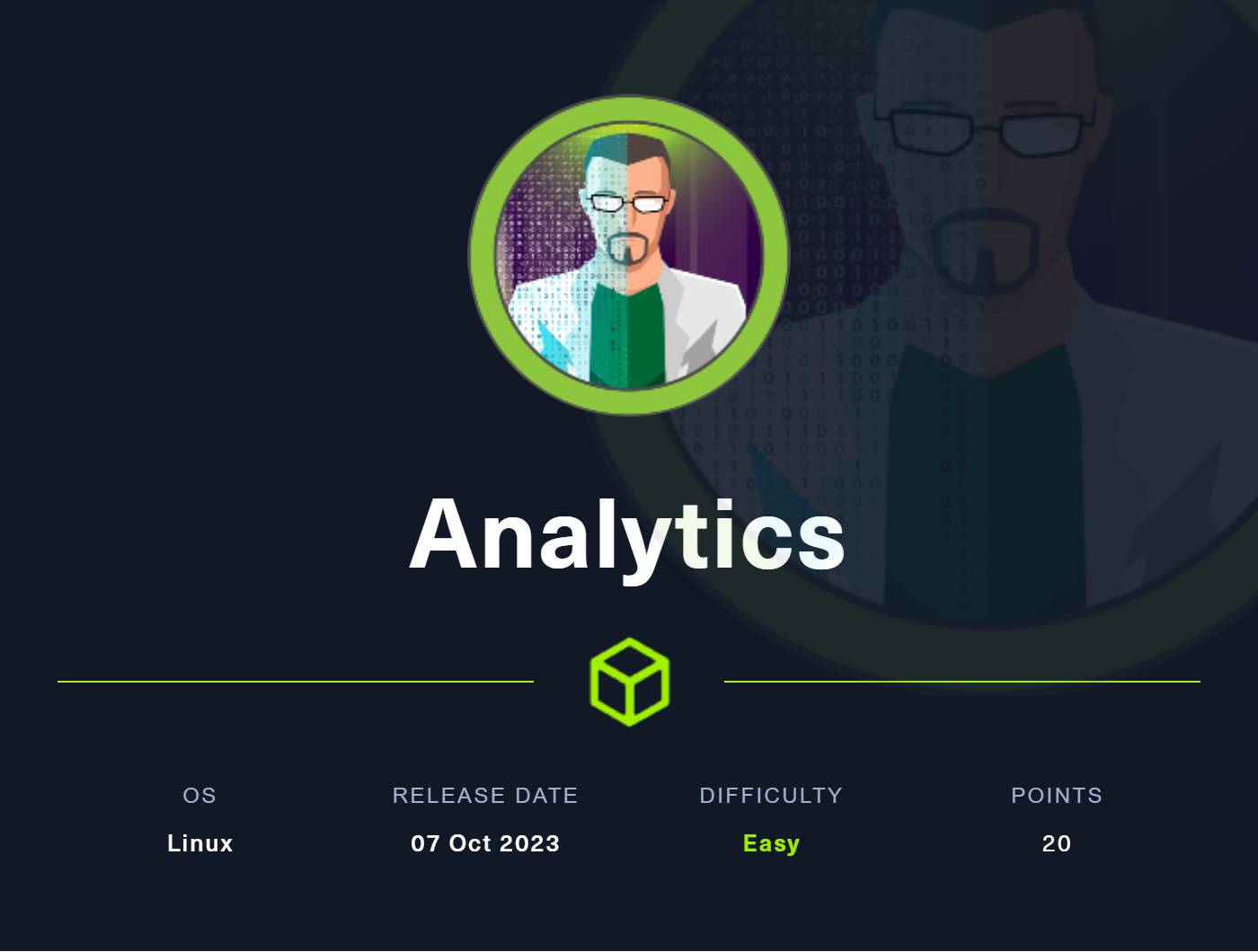 Analytics is a fun box that is very short. It has a bit of a frustrating privilege escalation step which could be difficult for beginners to find. The box mainly centers around enumeration and use of CVE's.