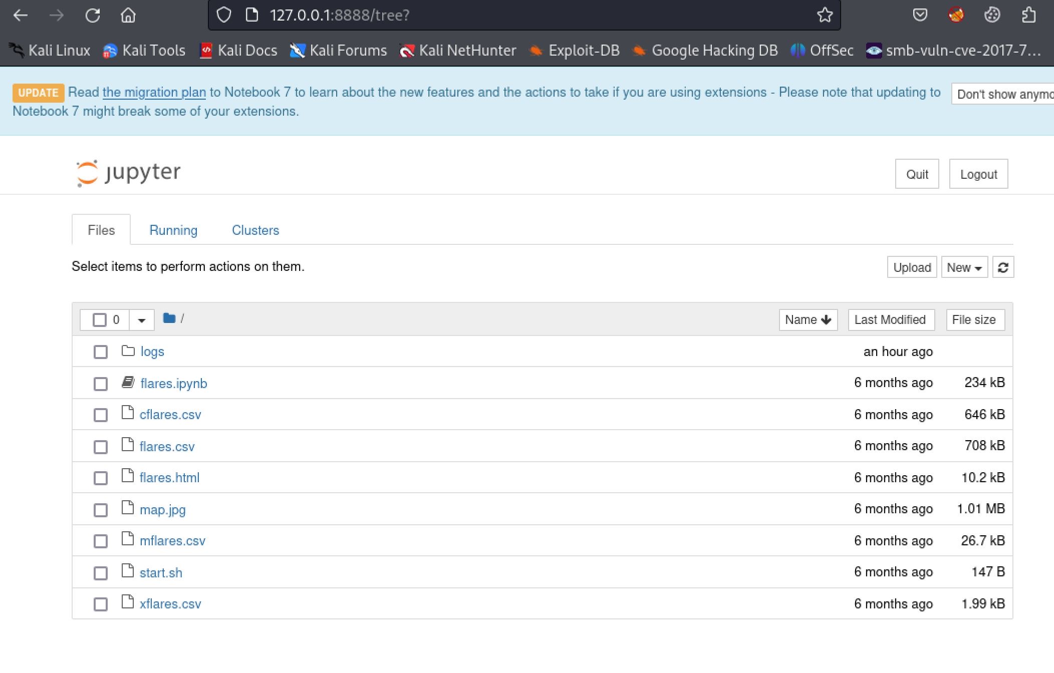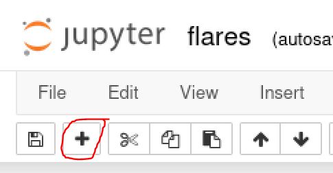 From here I clicked on flares.ipynb to open the notebook. I used the add button to add a cell to the notebook.