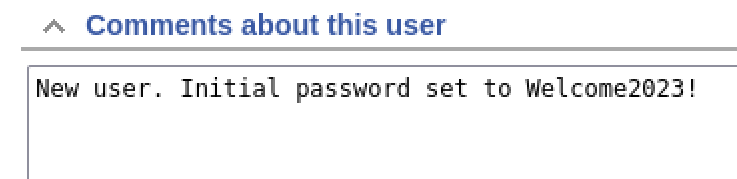 From here I discovered the lnorgaard user and upon clicking on them was presented with a password in the comment section, Welcome2023!