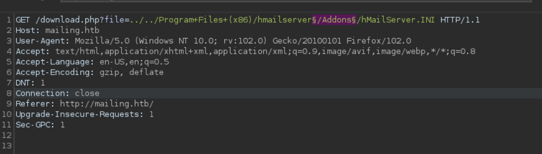 200 GET 1l 5w 31c http://mailing.htb/download.php