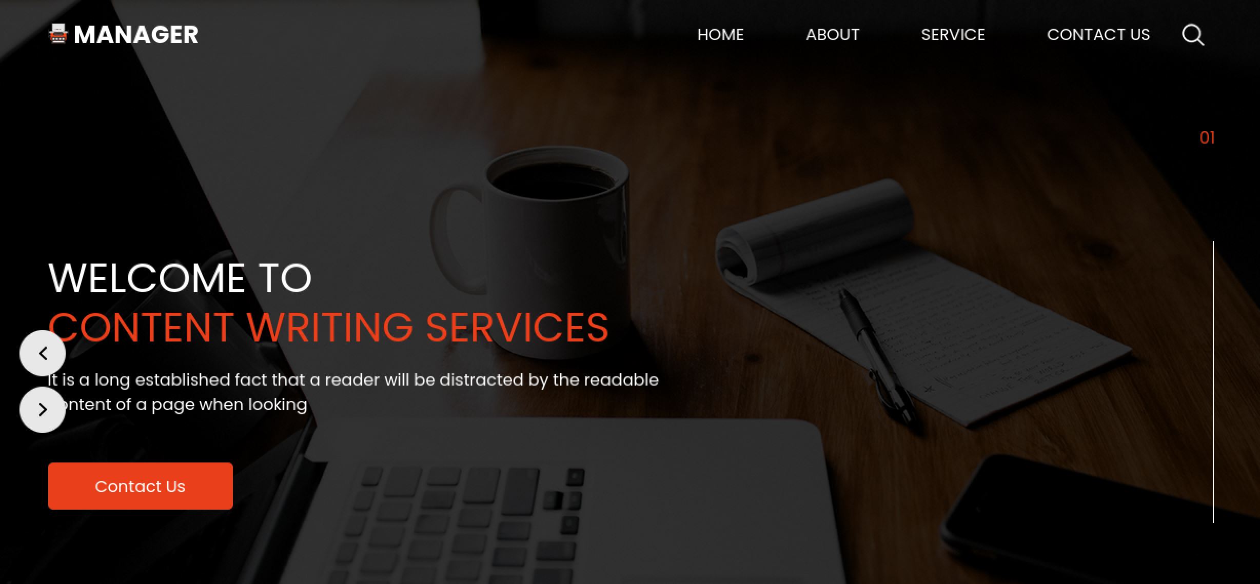 The website has 3 tabs: Home, About, Service and Contact Us.