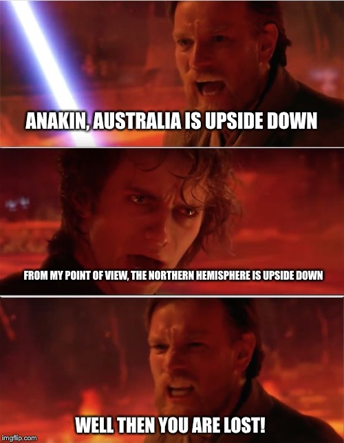 Its called the land DOWN under for a reason Anakin!