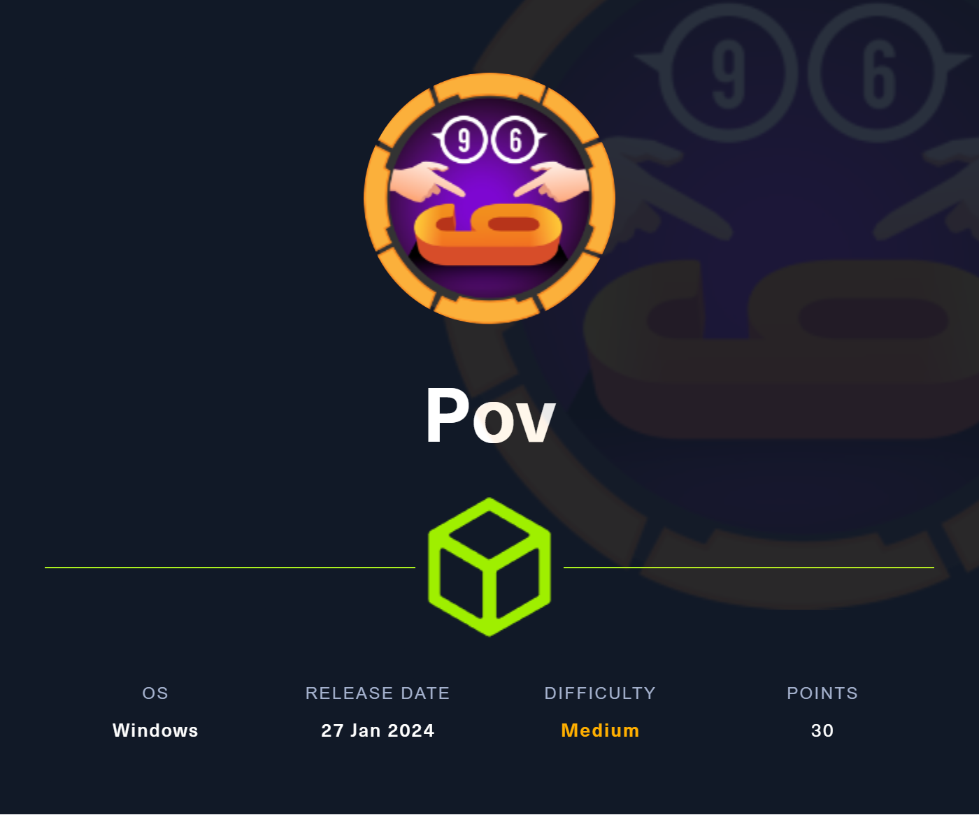 Pov was a medium windows box that at first prevented a very small attack surface and had some fairly unique exploit vectors. It involves a .net deserialization vulnerability for user and the privilege escalation step was fairly straight forward simply requiring the exploitation of windows sedebug privileges.