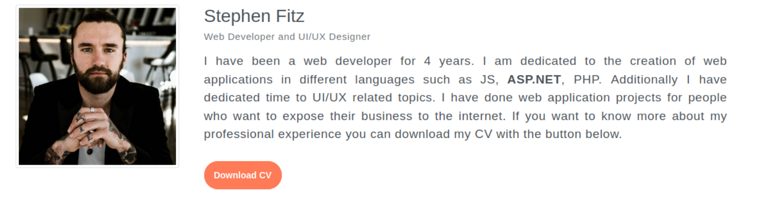 There is however a download CV button on the main page.