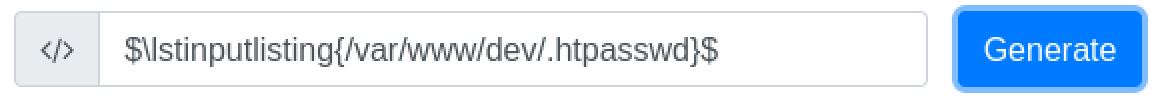 Injection string to read the file containing the passwords for the basic web authorization on the dev subdomain