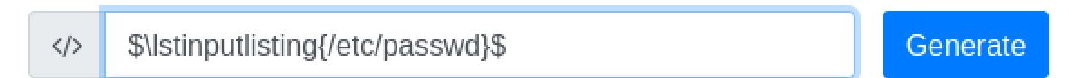Knowing this I attempted to use the \lstinputlisting function to read /etc/passwd and confirm the LFI vulnerability. It did not work even though the filter was being bypassed.