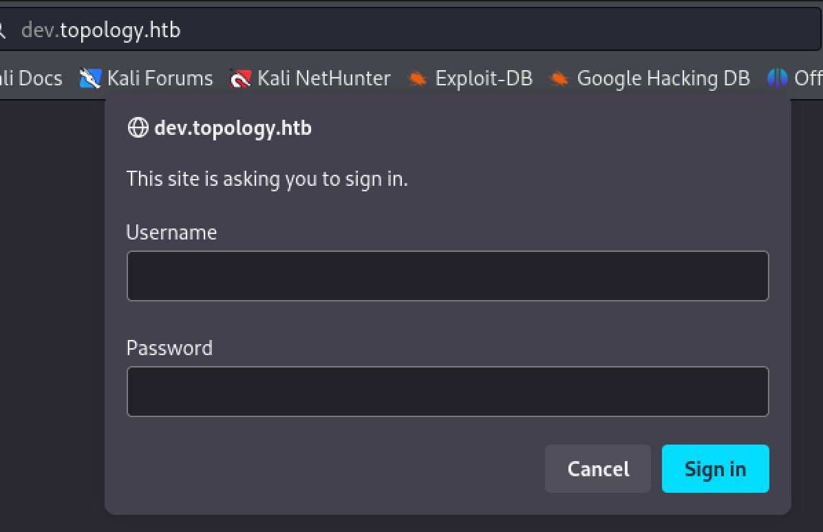 Basic webauth on the dev.topology.htb subdomain