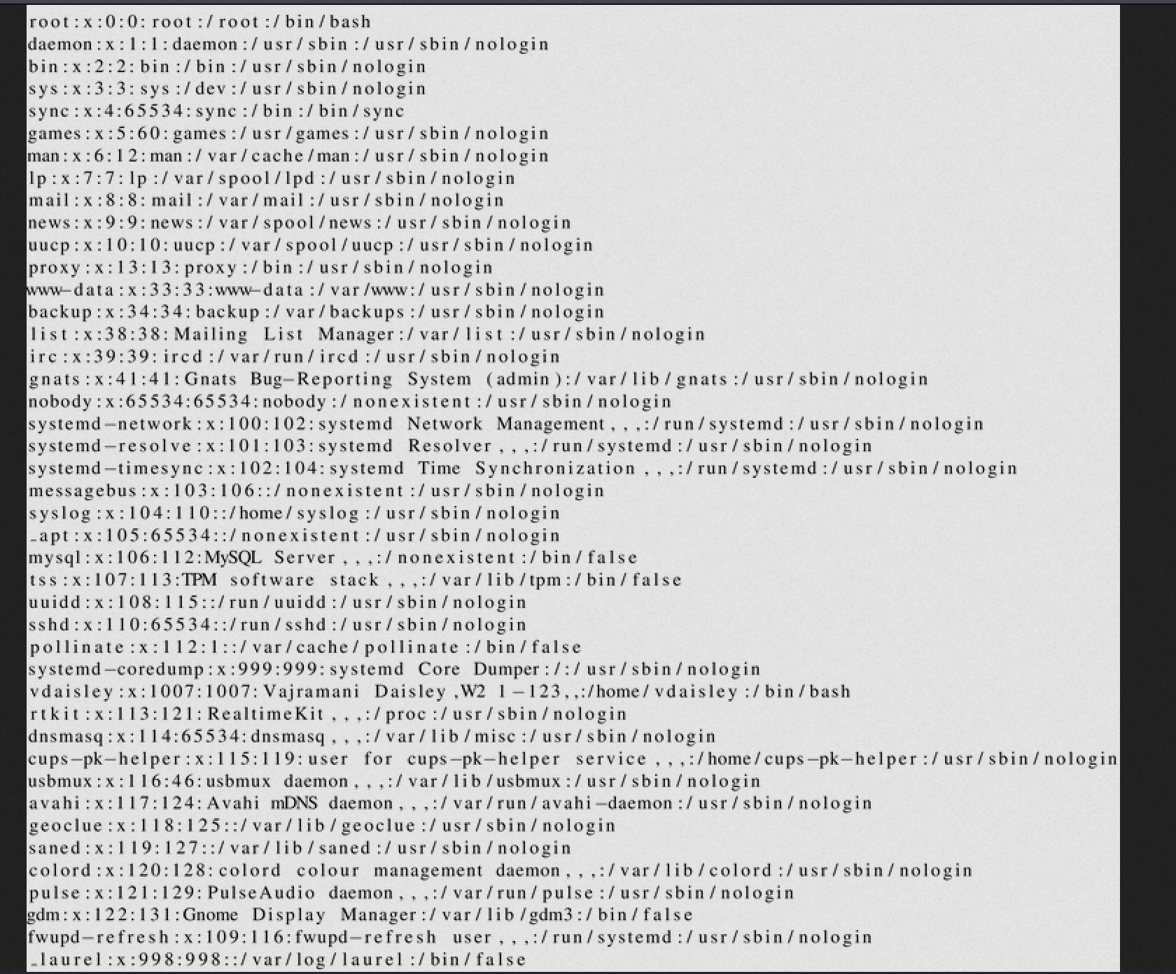 /etc/passwd file of the topology host gotten through LaTeX injection LFI
