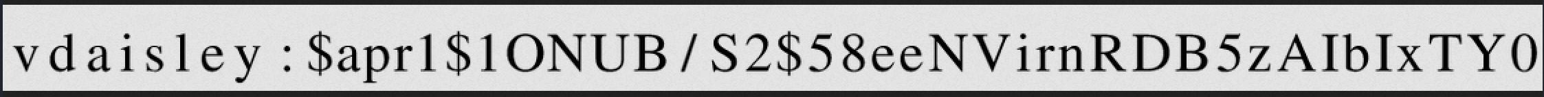 vdaisley:$apr1$1ONUB/S2$58eeNVirnRDB5zAIbIxTY0