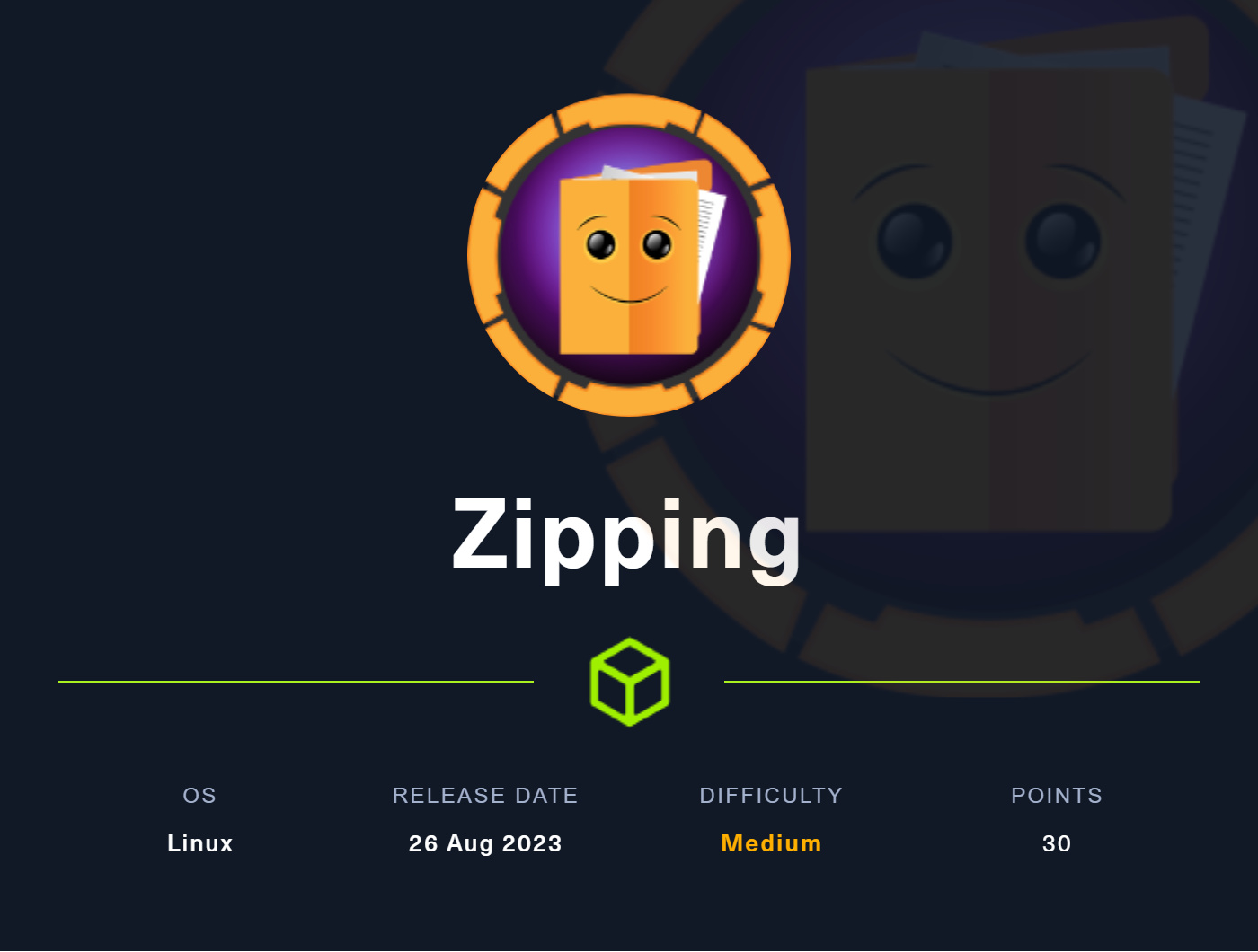 Other than one part of the exploitation, Zipping was a fun box that involved many different moving parts. The attacker starts by finding an upload form where they can upload zip archives. This is vulnerable to an ZIP Symlink attack and allows for LFI. From this LFI the attacker can enumerate an SQLI vulnerability present in the web application. This can then be used to write a reverse shell to the machine and use the LFI to call it. Exploiting this SQLI vulnerability for a shell was by far the hardest part of the box and took me a long time, likely due to my lack of experience in SQLI exploitation.
